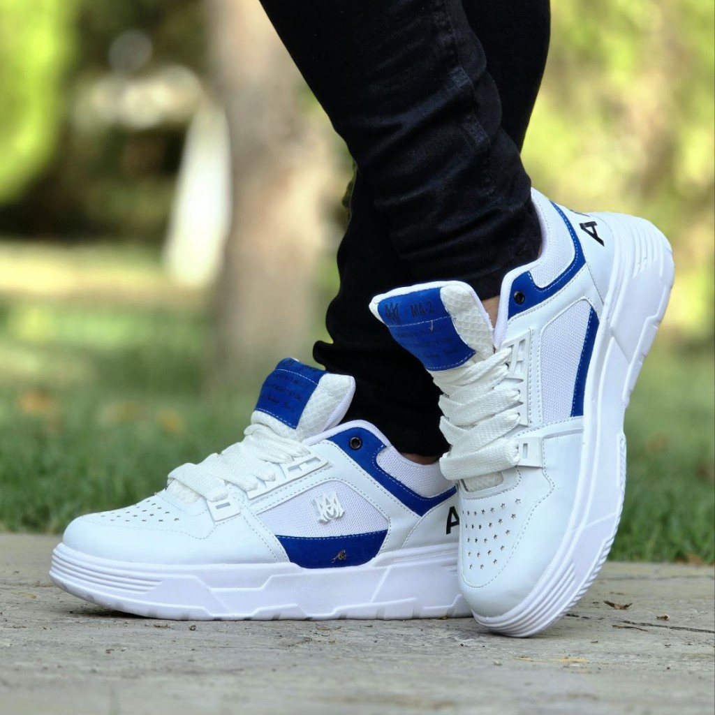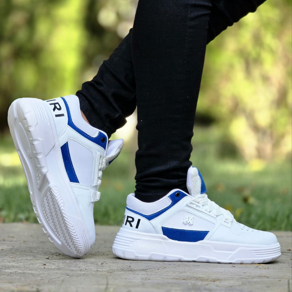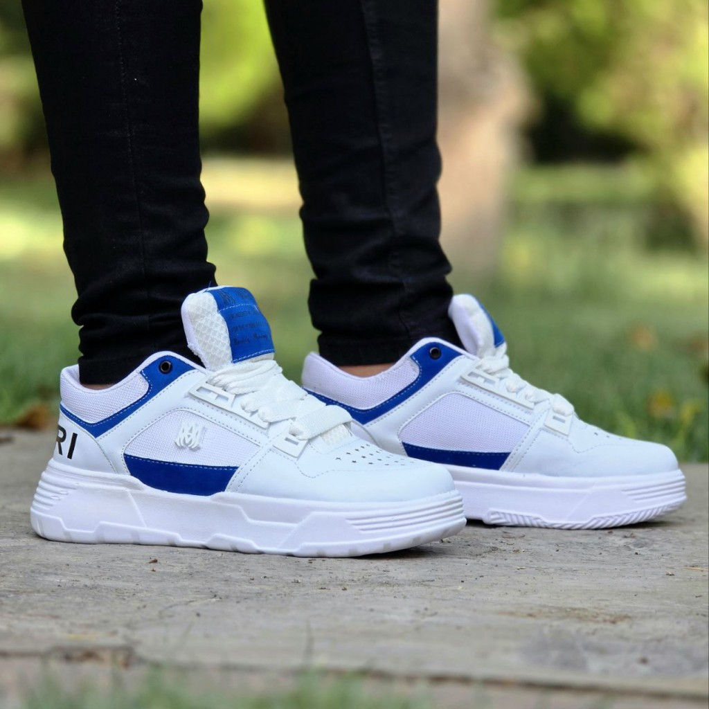 فروش فوق العاده خاص کفش کتونی اسپرت مردانه و پسرانه مدل Amiri (امیری) با طرحی عالی رنگ سفید آبی با ارسال رایگان