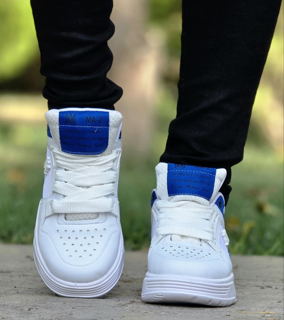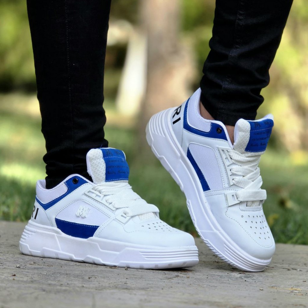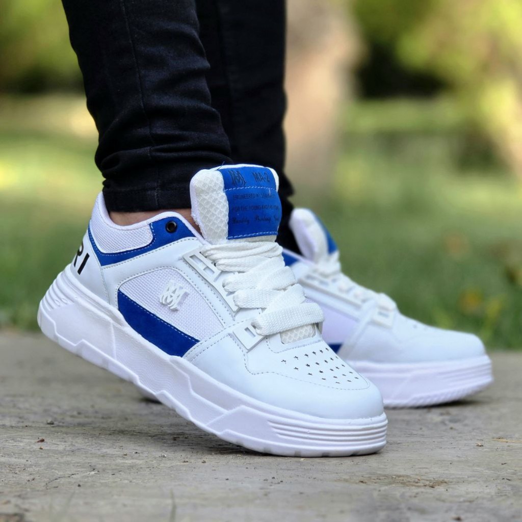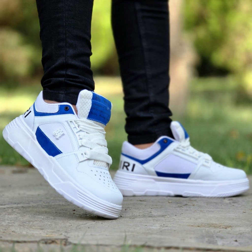 فروش فوق العاده خاص کفش کتونی اسپرت مردانه و پسرانه مدل Amiri (امیری) با طرحی عالی رنگ سفید آبی با ارسال رایگان
