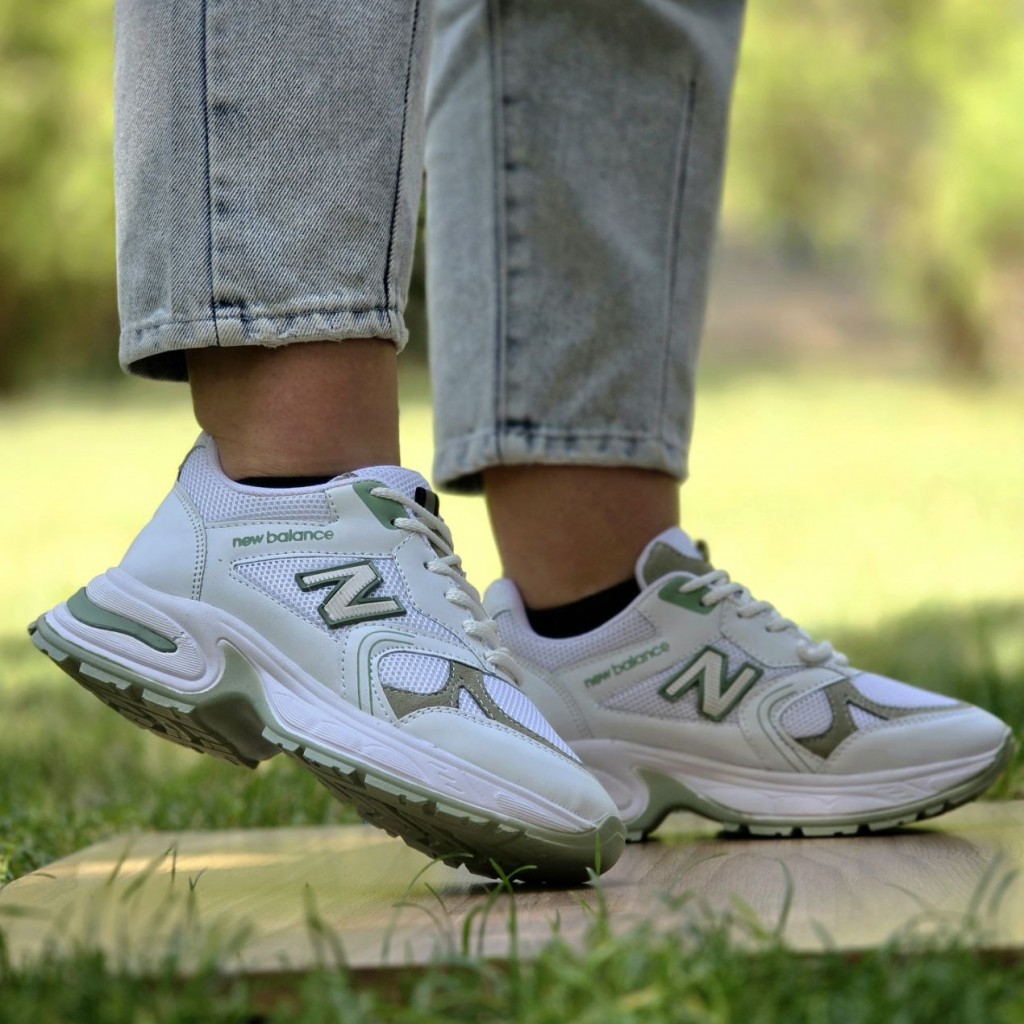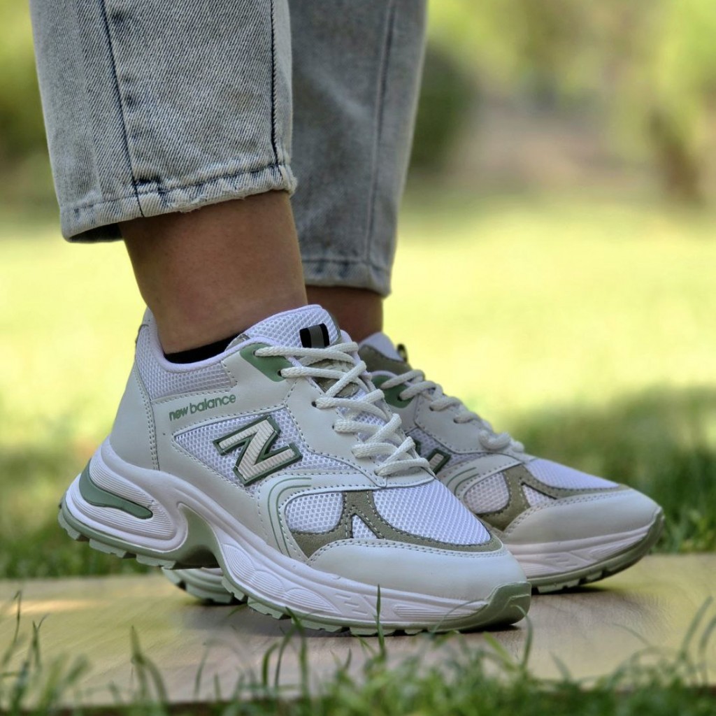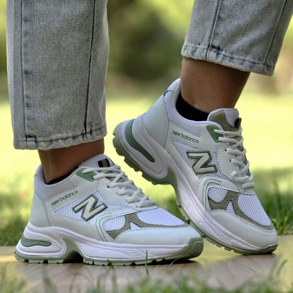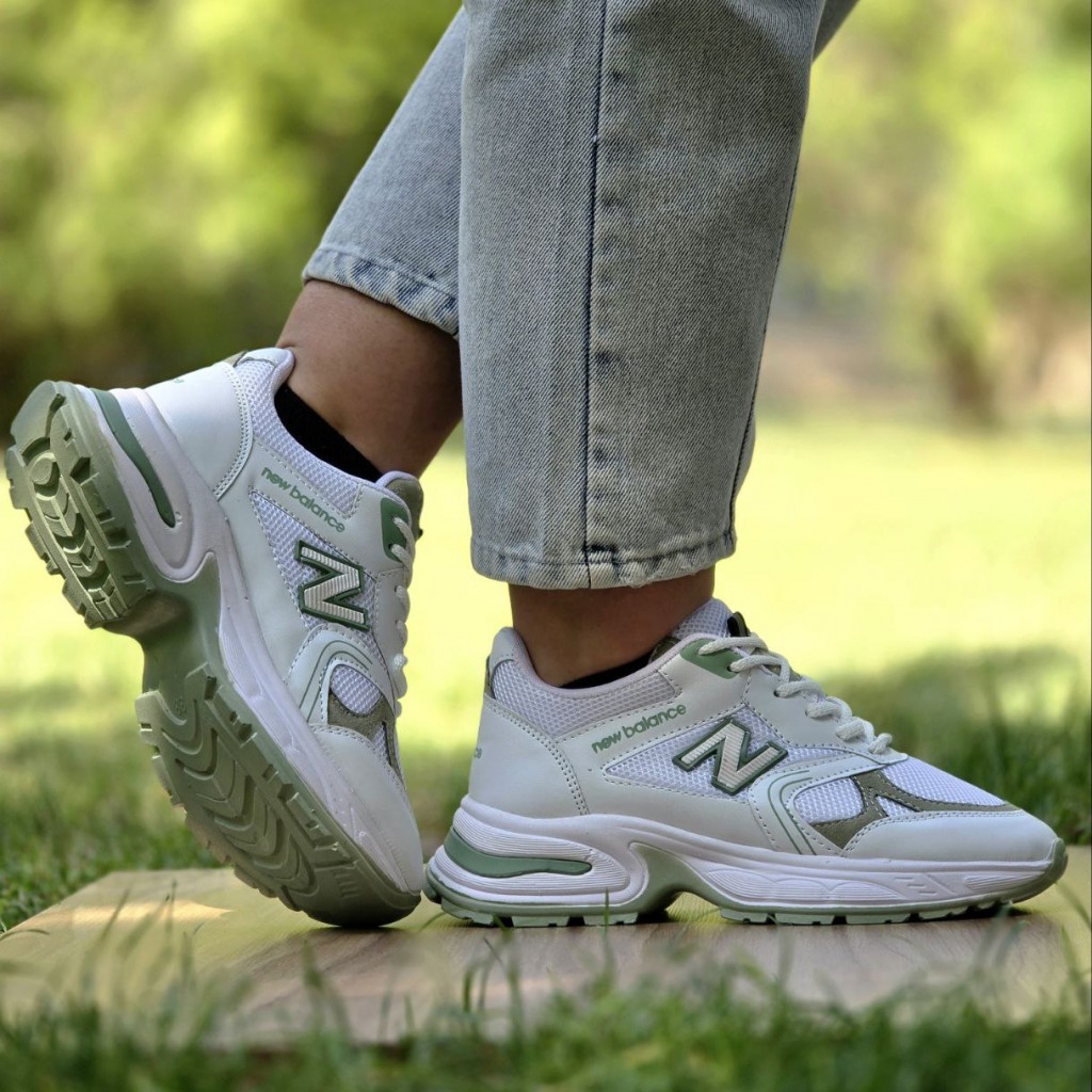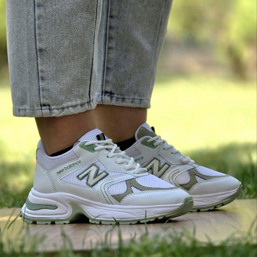 فرووش استثنایی کفش کتونی اسپرت دخترانه و زنانه مدل نیوبالانس اصیل و جذاب رنگ سفید سبز با ارسال رایگان