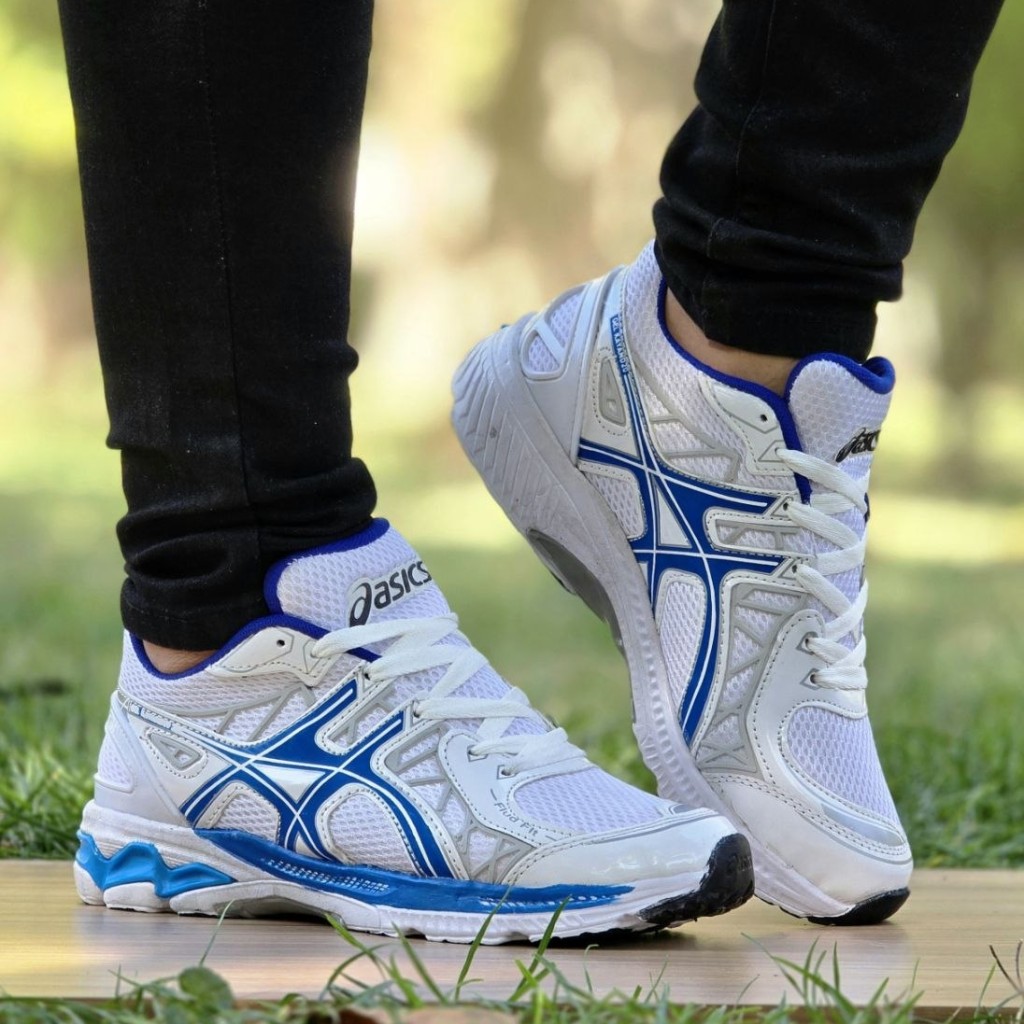 تخفیف ویژه کفش کتونی اسپرت مردانه و پسرانه مدل اسیکس مقاوم و عالی رنگ سفید آبی با ارسال رایگان
