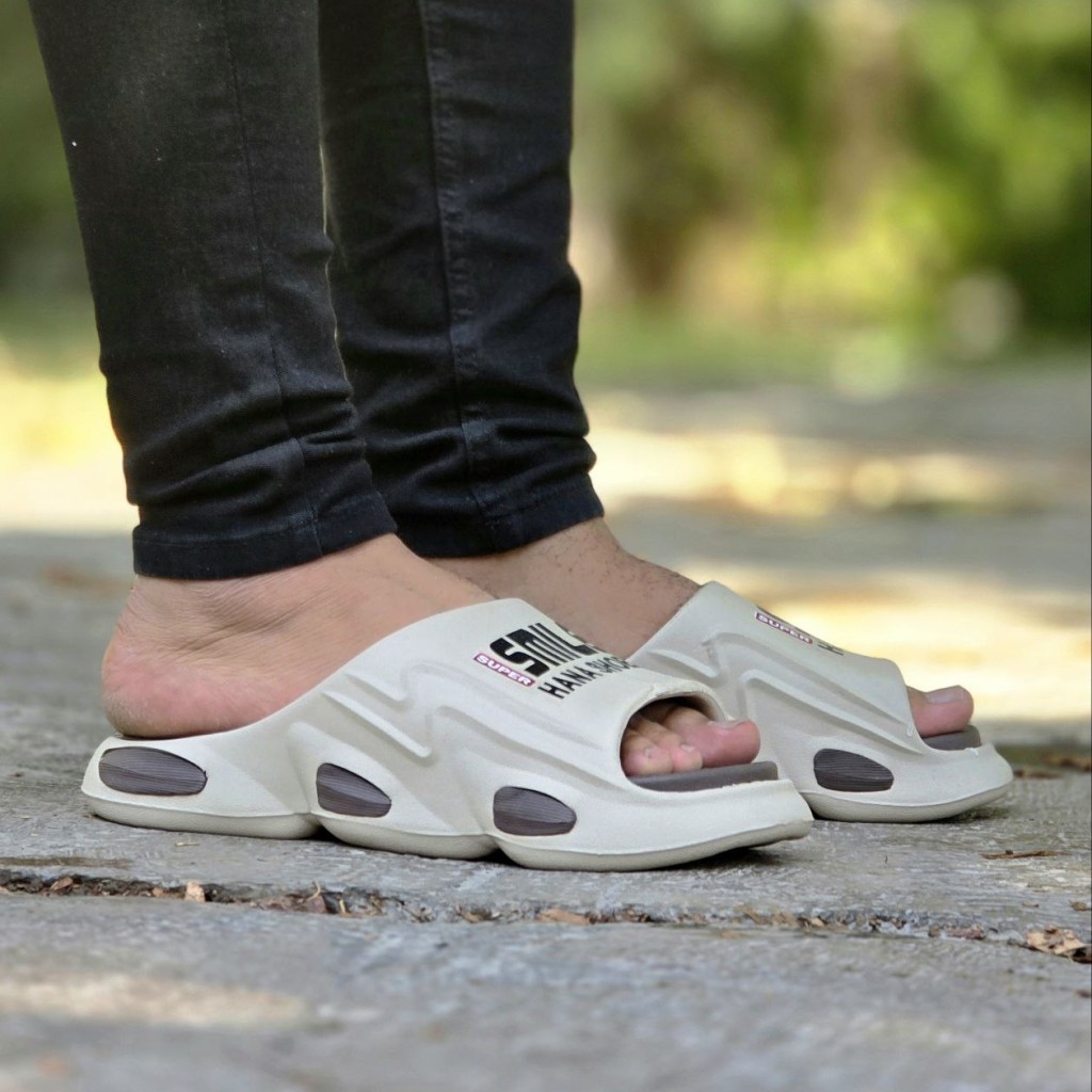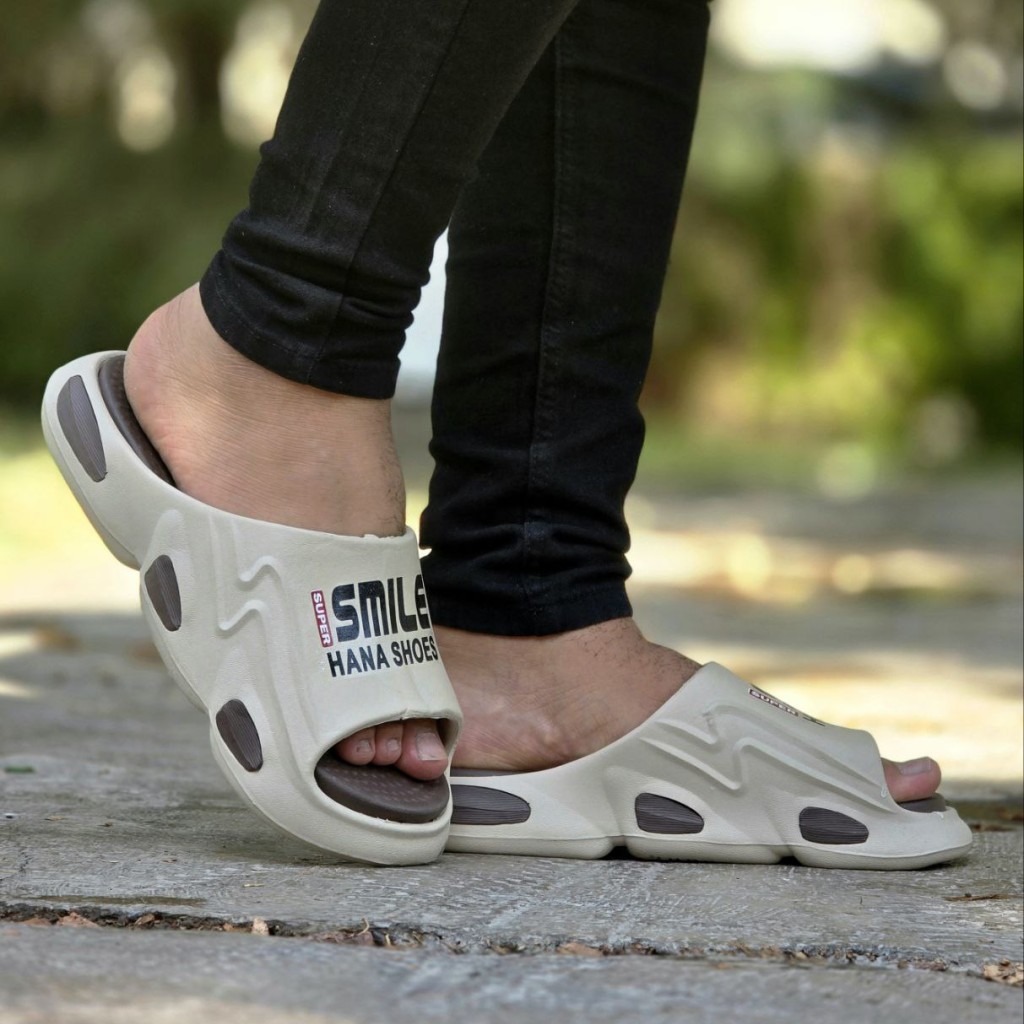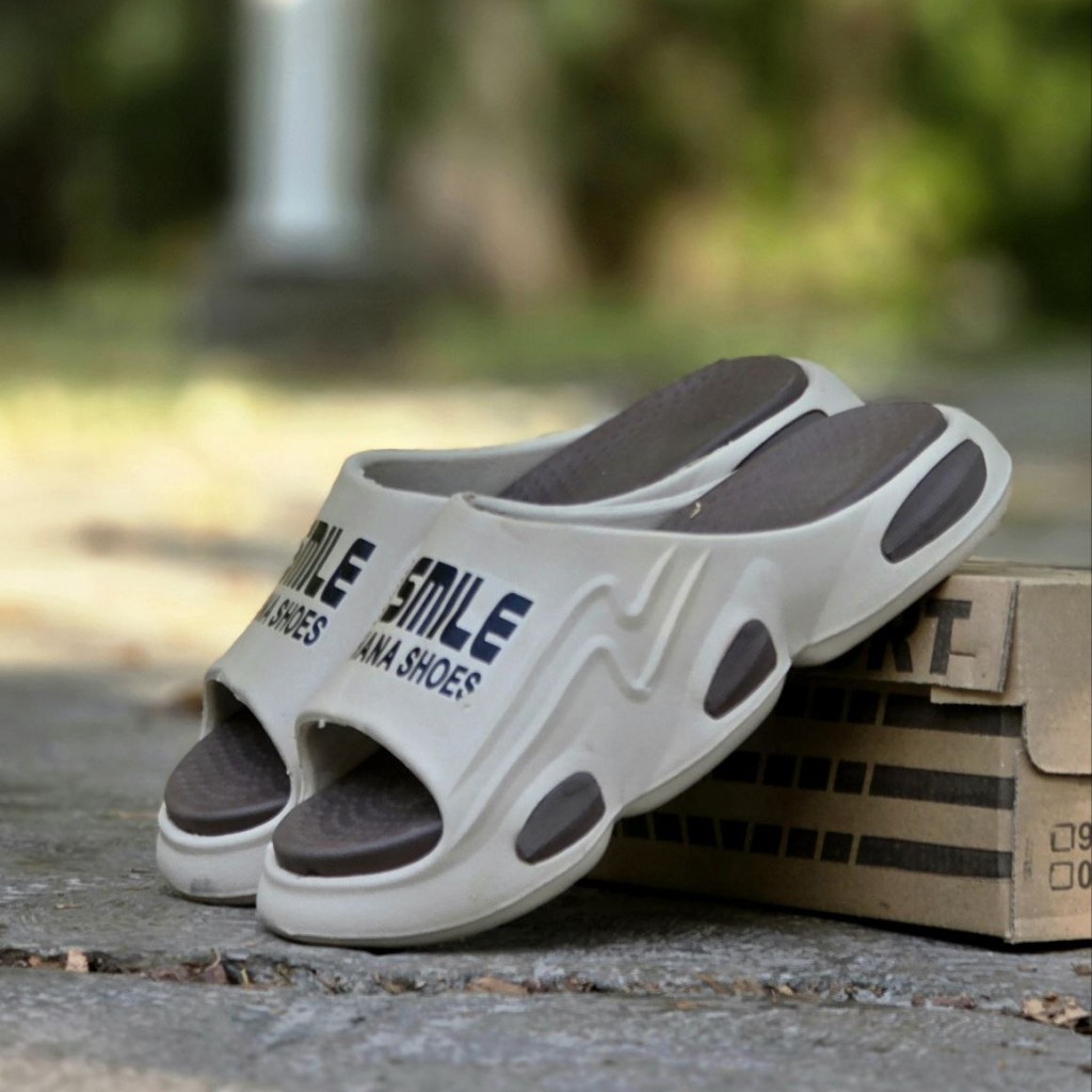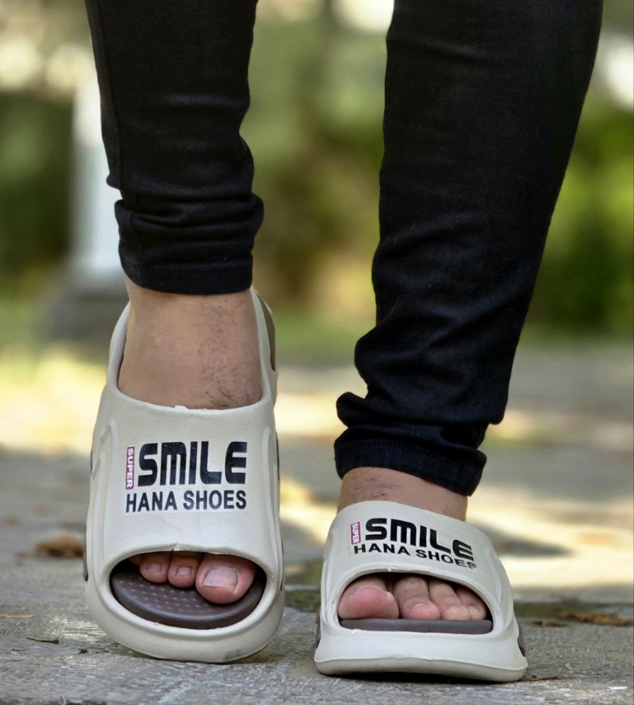 حراجی دمپایی صندل مردانه و پسرانه مدل فشیون طرح smile نرم و راحت رنگ کرم ارسال رایگان.