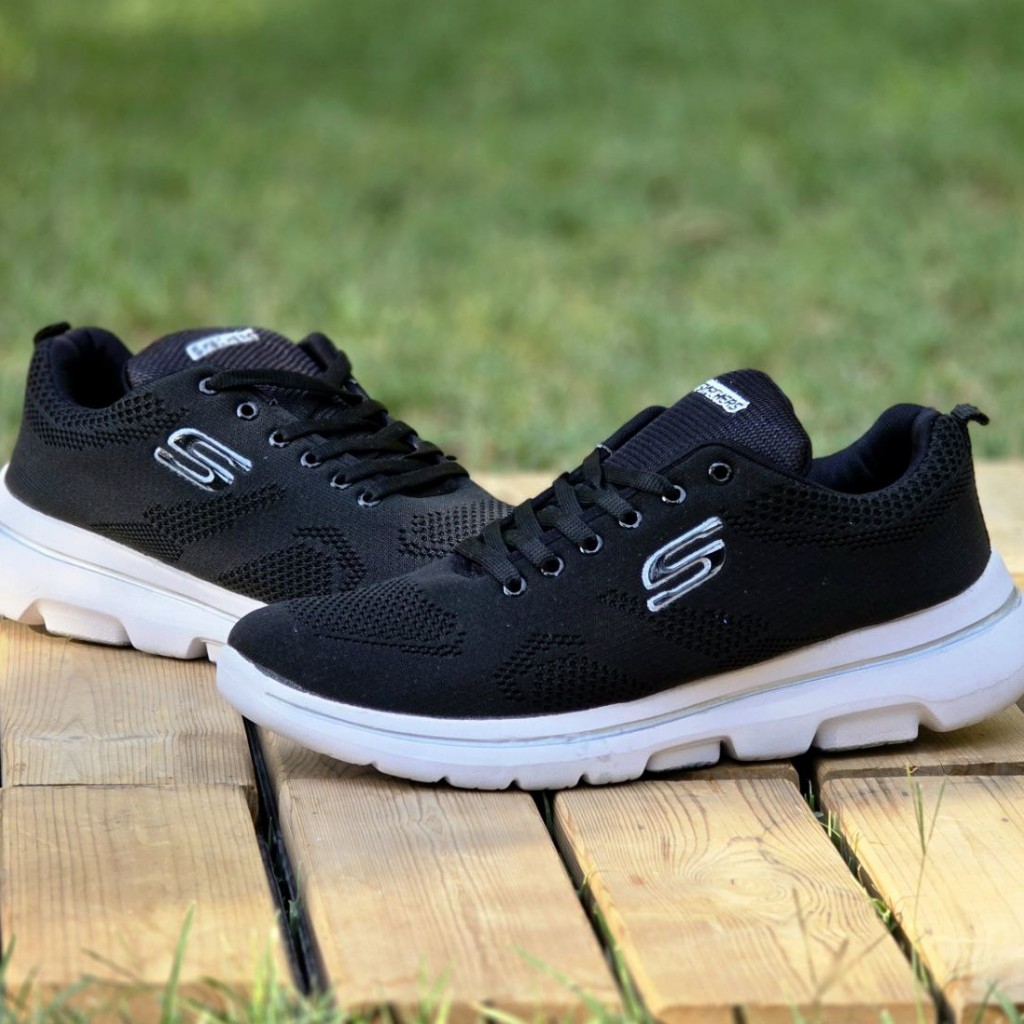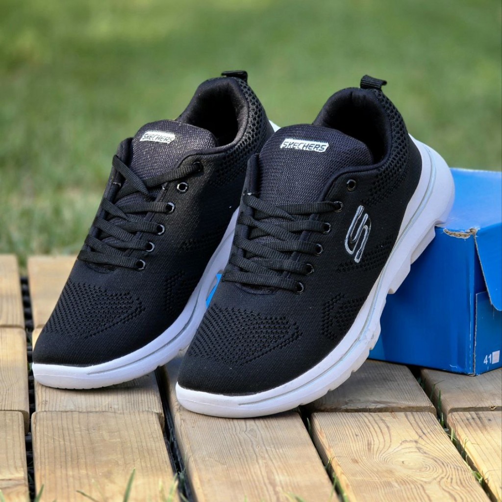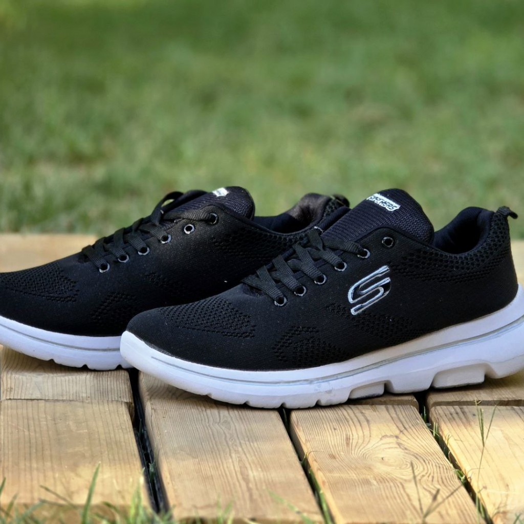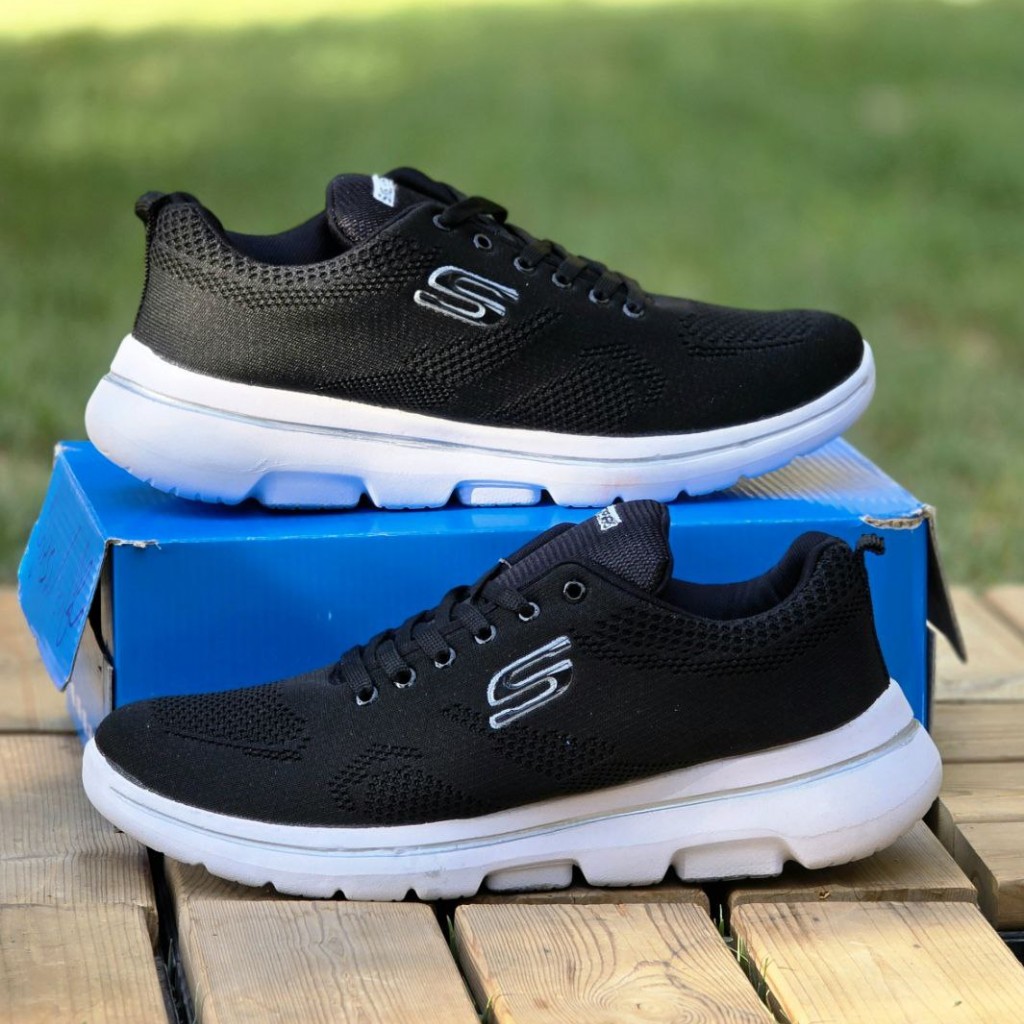 حرااج هیجان انگیز کفش کتونی اسپرت مردانه و پسرانه مدل اسکیچرز بزرگپا محکم و بادوام رنگ مشکی زیره سفید با ارسال رایگان