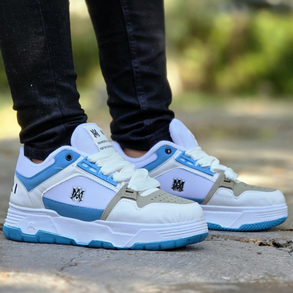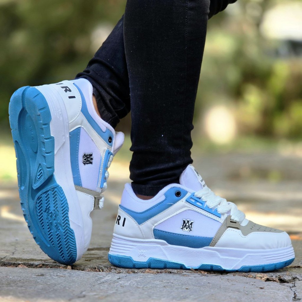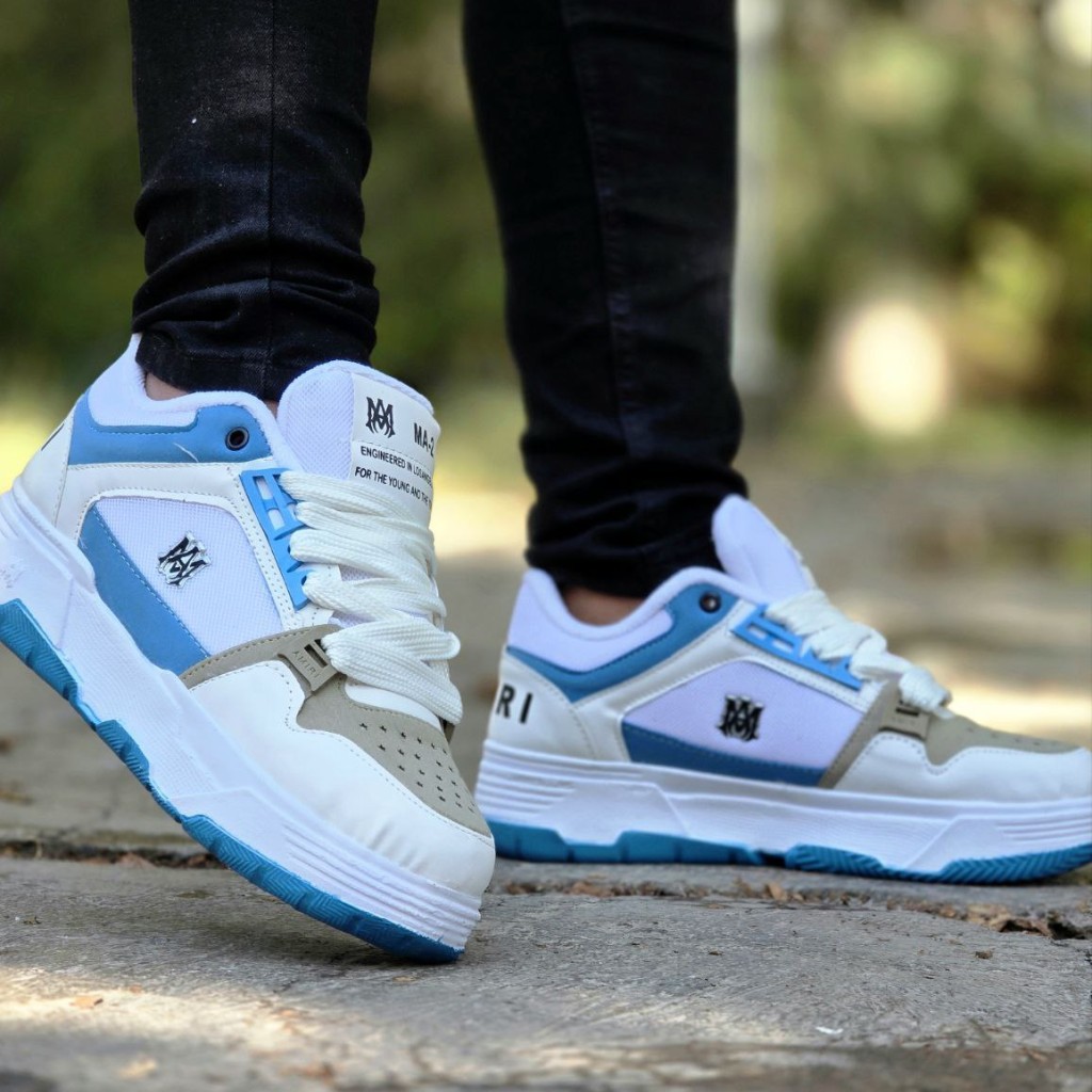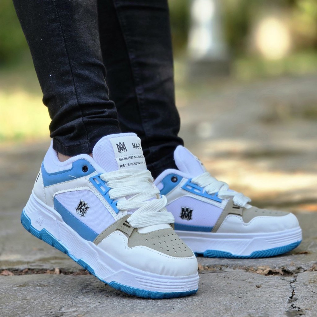 فروش دل ربا کفش کتونی اسپرت مردانه و پسرانه مدل Amiri (امیری) پر فروش و خاص رنگ سفید ابی کرم با ارسال رایگان