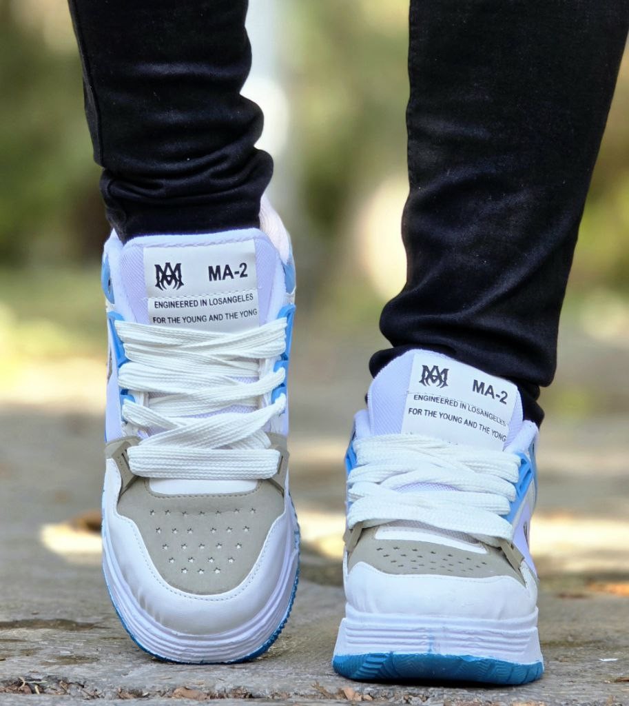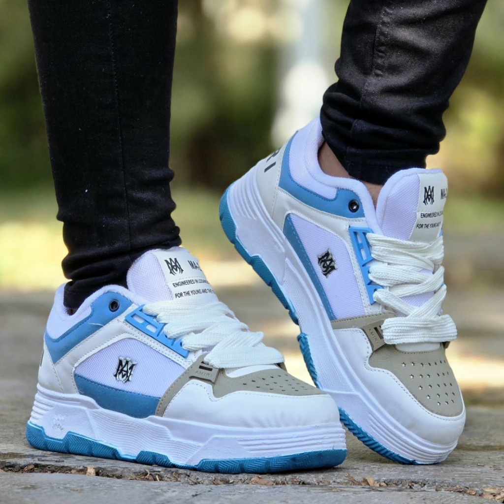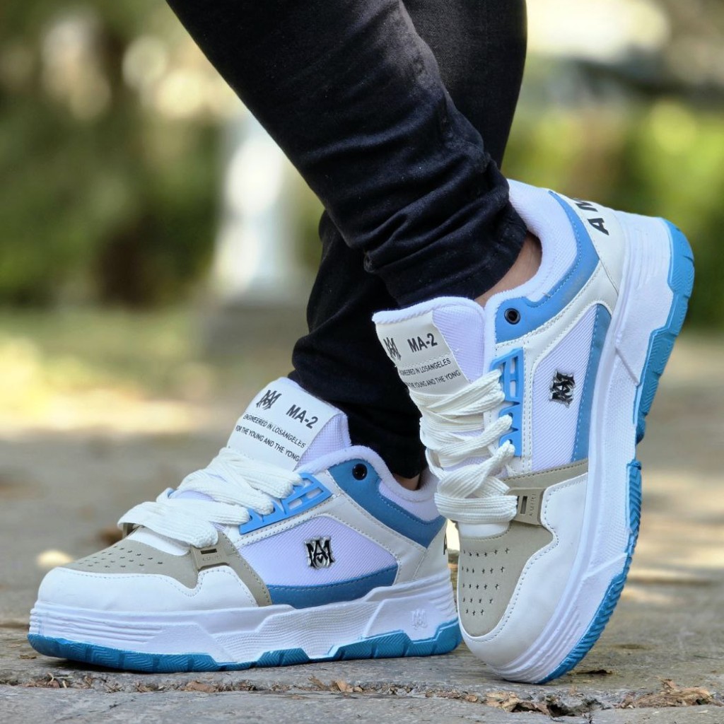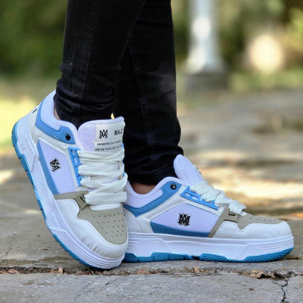 فروش دل ربا کفش کتونی اسپرت مردانه و پسرانه مدل Amiri (امیری) پر فروش و خاص رنگ سفید ابی کرم با ارسال رایگان