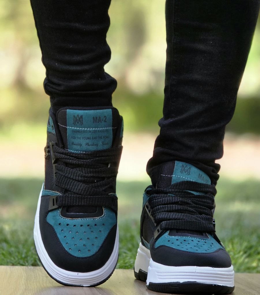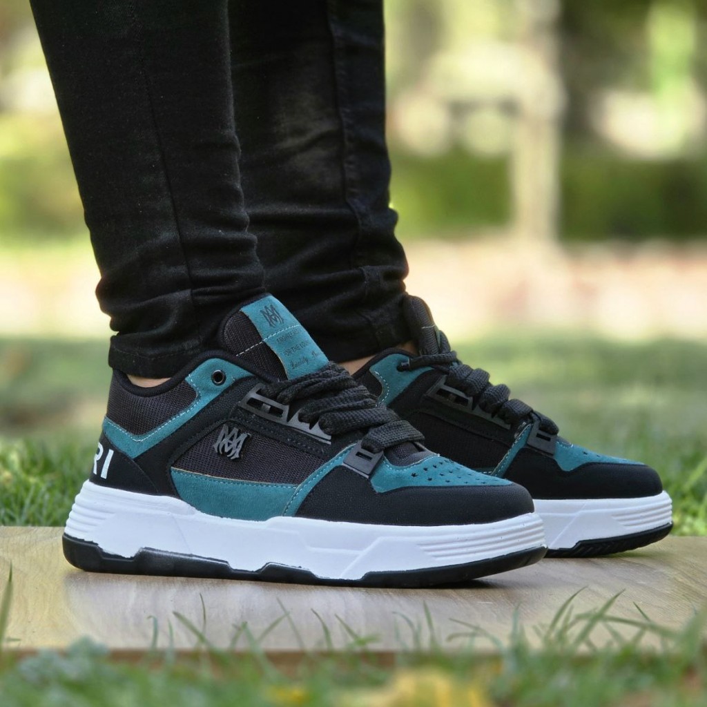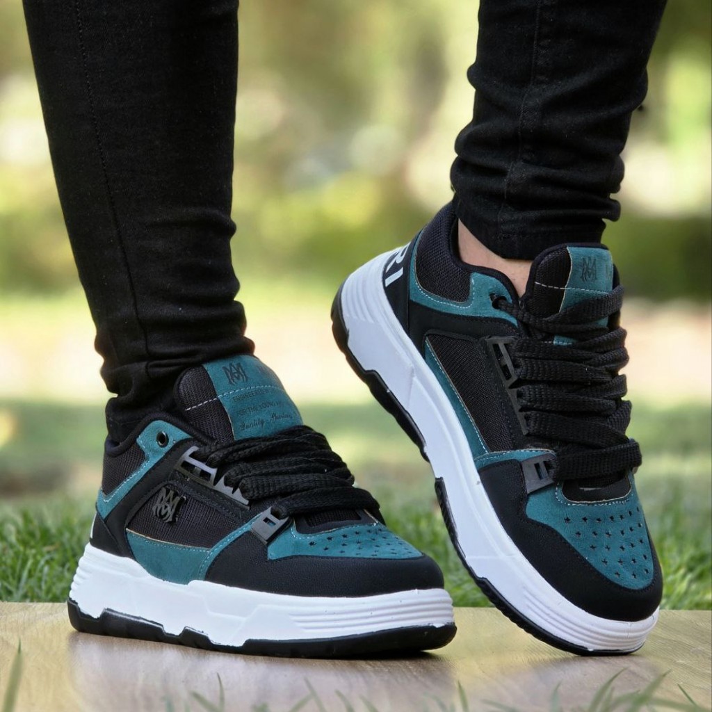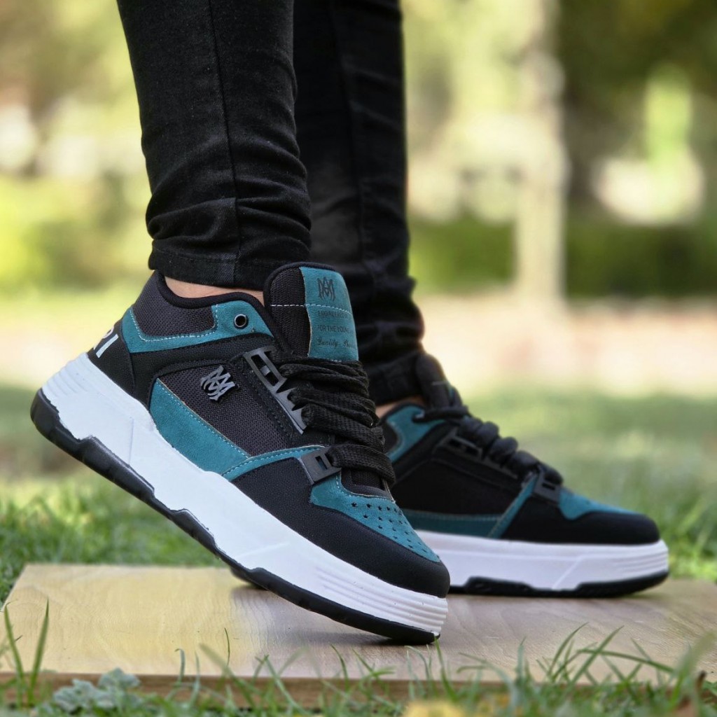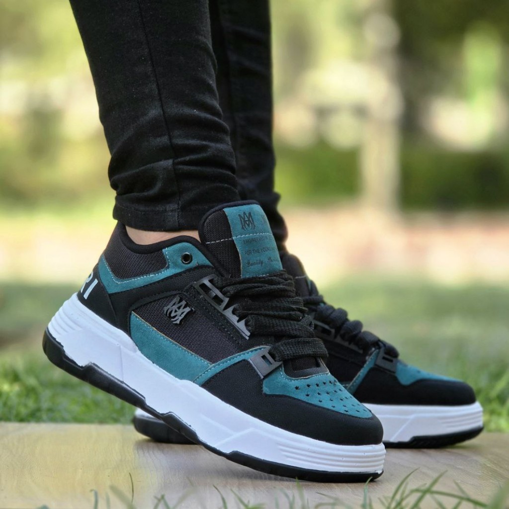فرووش وااقعی کفش کتونی اسپرت مردانه و پسرانه مدل Amiri (امیری) ترند و خوشپا رنگ مشکی سبز با ارسال رایگان