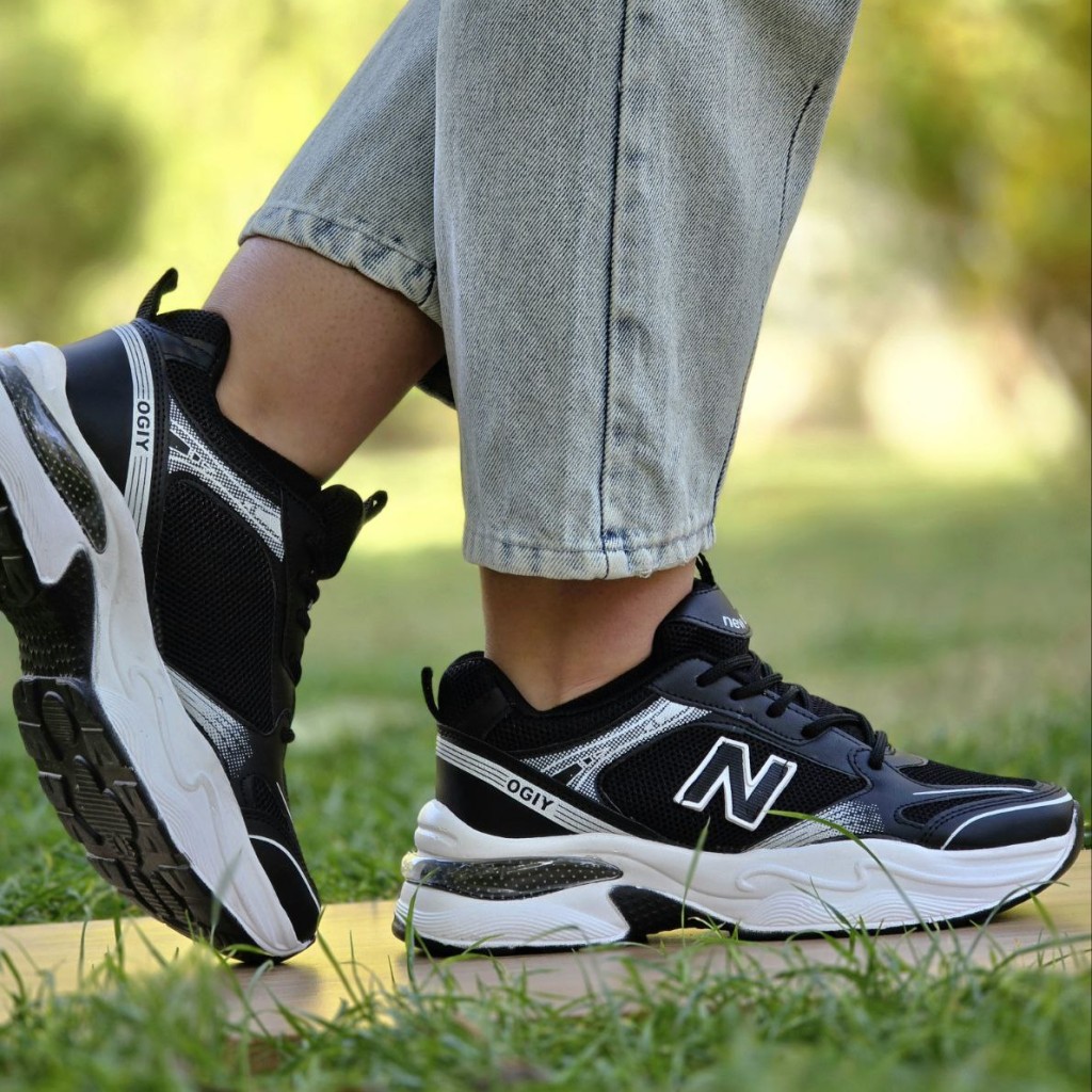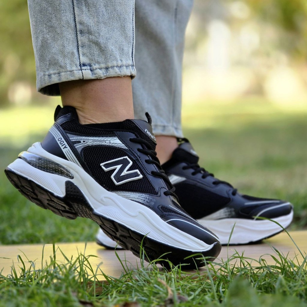 حراجی کفش کتونی اسپرت دخترانه و زنانه مدل نیوبالانس طرح کپسولی بی نظیر رنگ مشکی سفید با ارسال رایگان