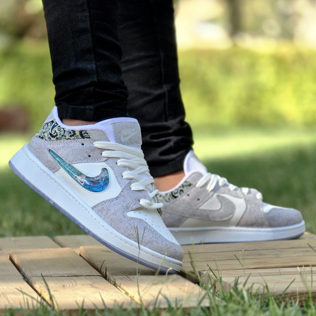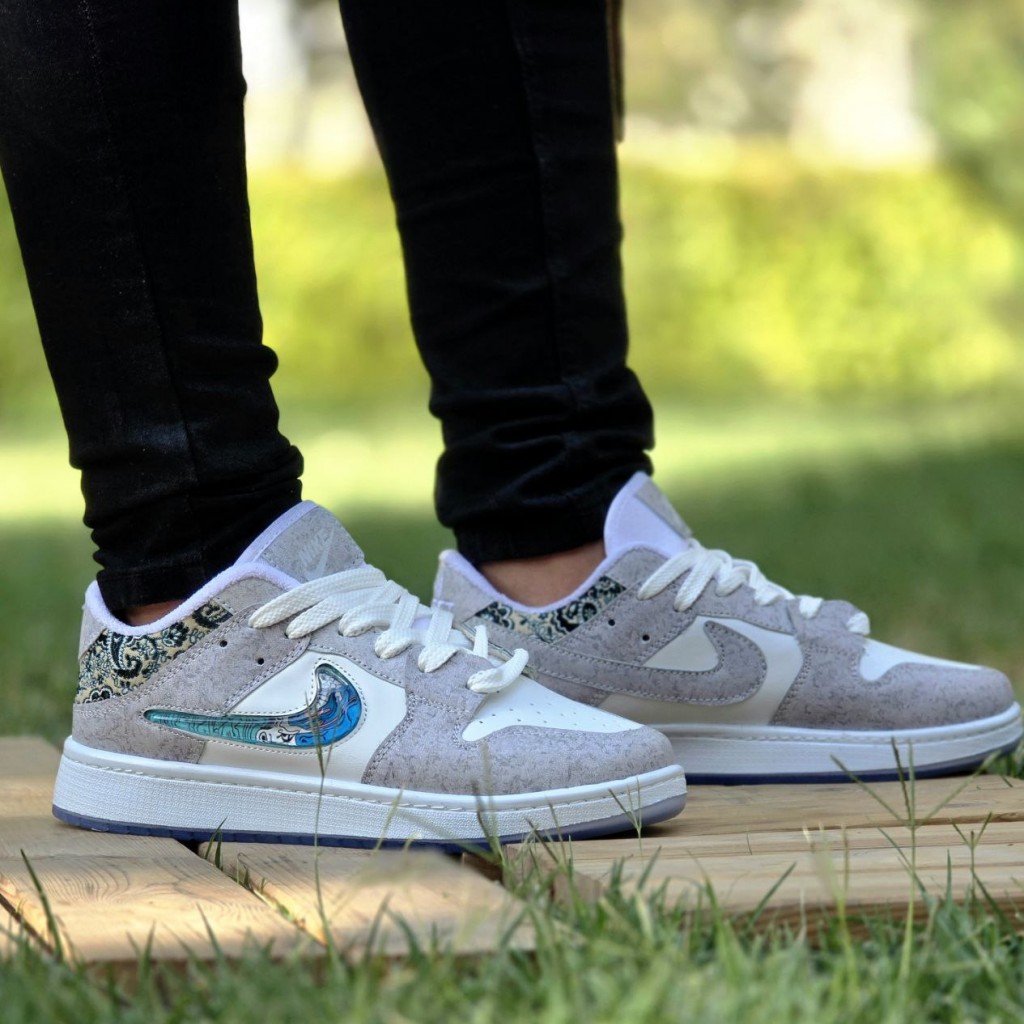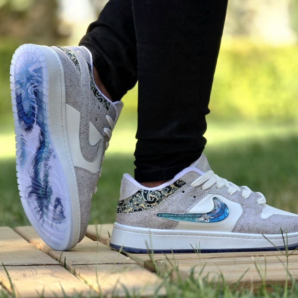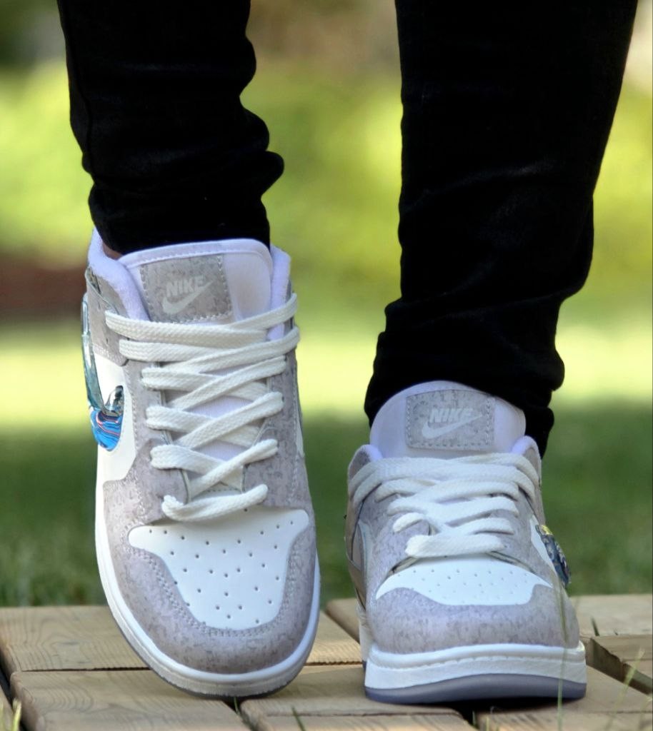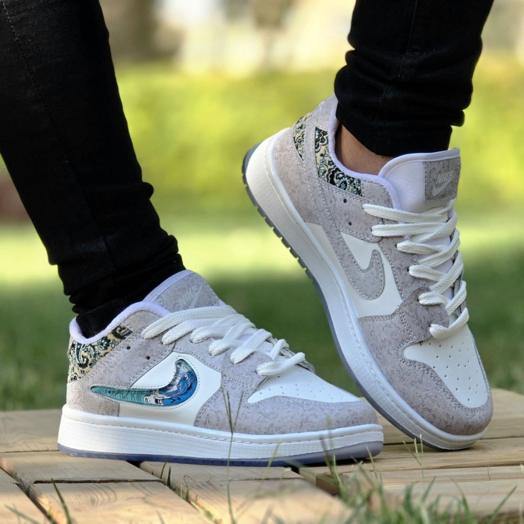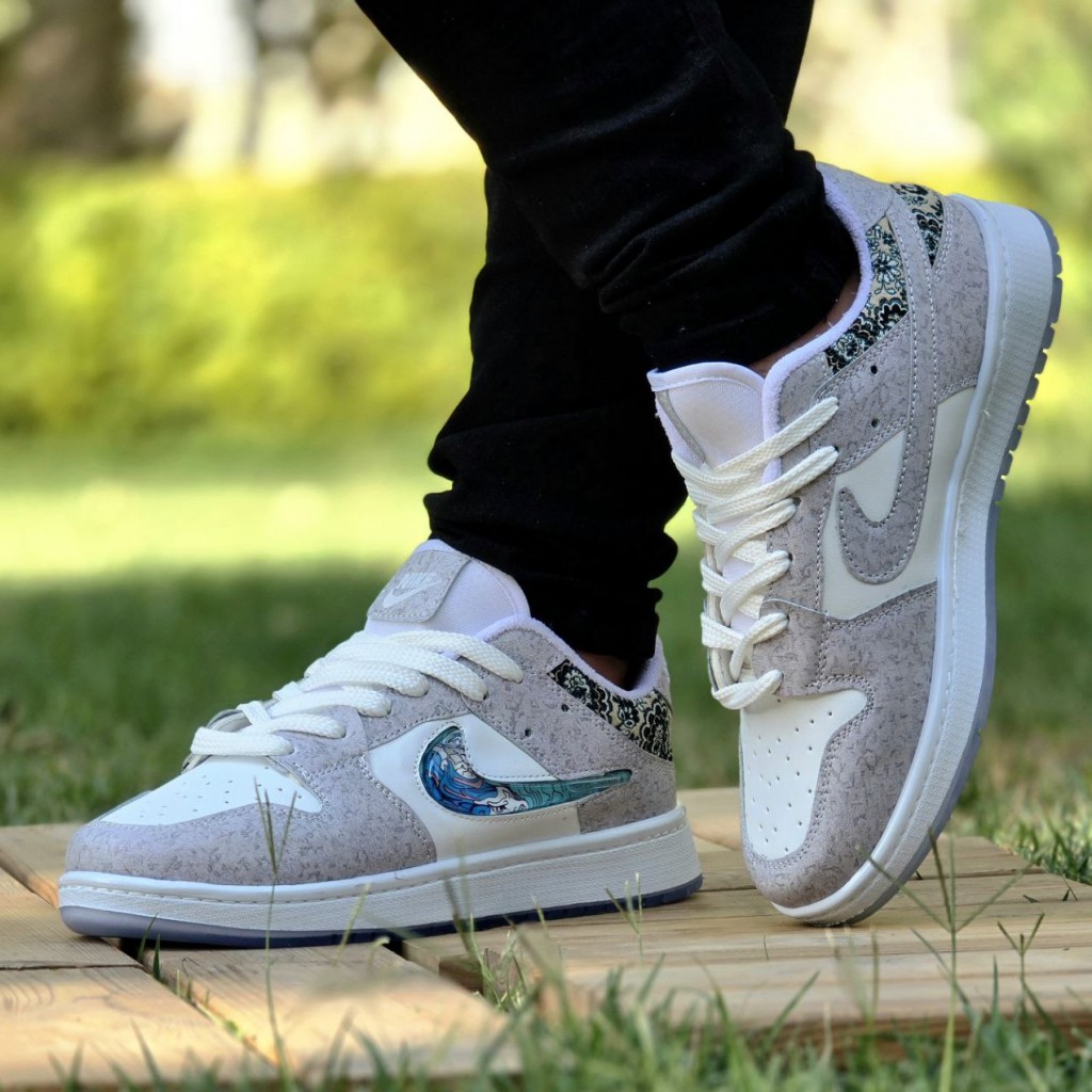 حراجی ست کفش اسپرت مردانه زنانه مدل نایک دراگون Nike Dragon جدید و مقاوم رنگ طوسی آبی زیره سفید با ارسال رایگان