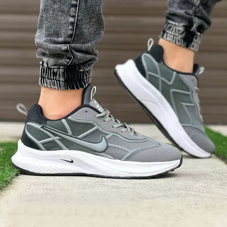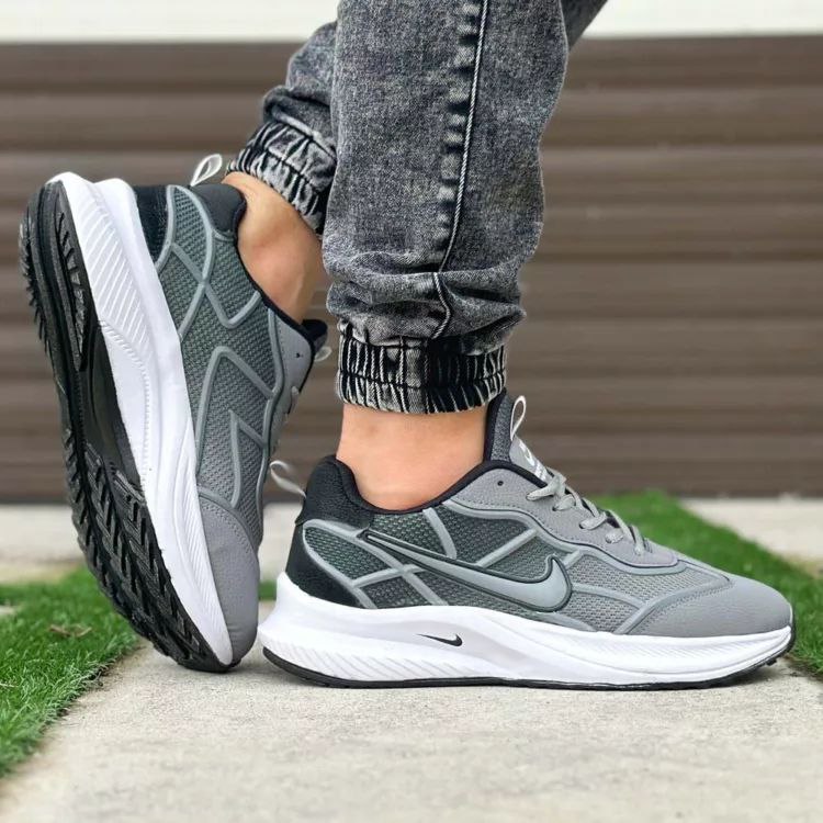فروش شگفت انگیز کفش اسپرت مردانه پسرانه مدل نایک سبک و مدرن رنگ مشکی طوسی با ارسال رایگان