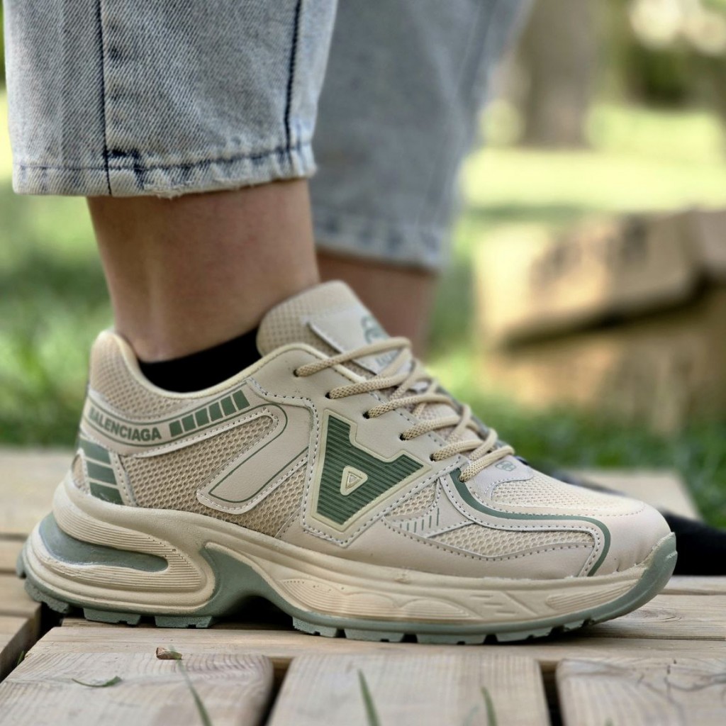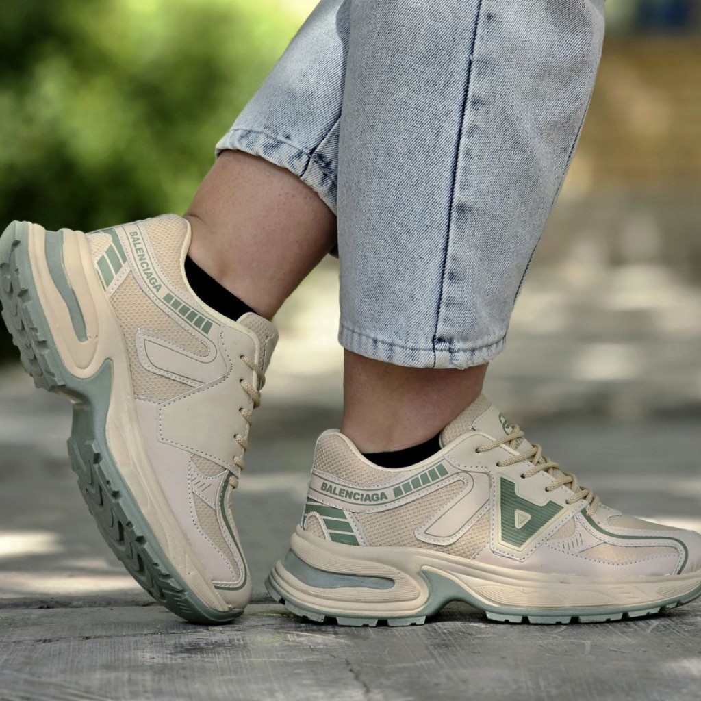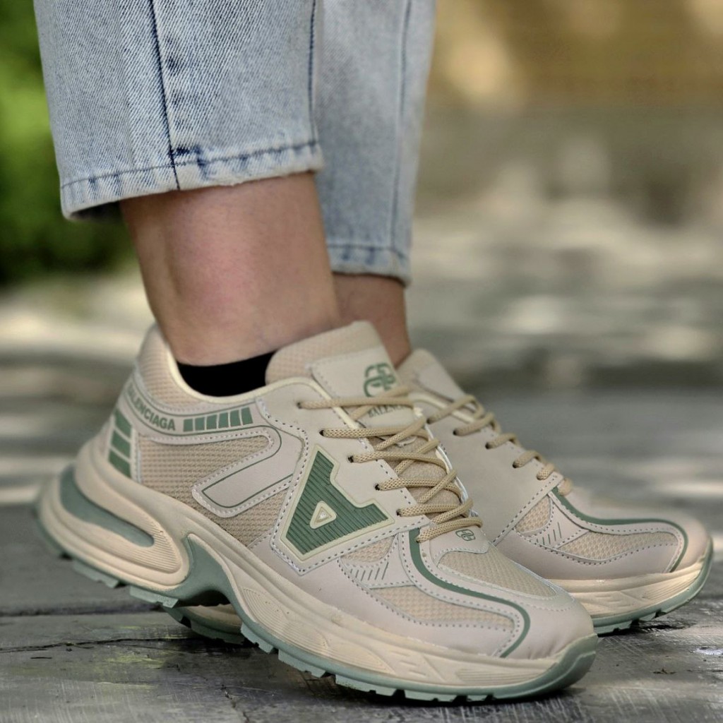 تخفیف فوق العاده کفش اسپرت زنانه دخترانه مدل بالنسیاگا شیک و سبک رنگ کرم سبز با ارسال رایگان
