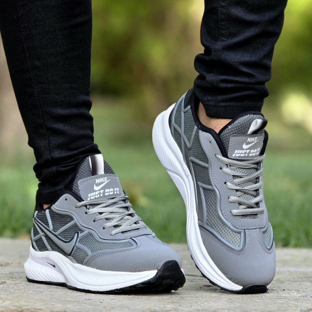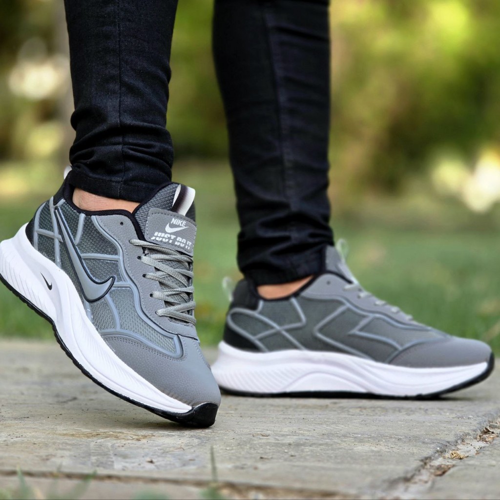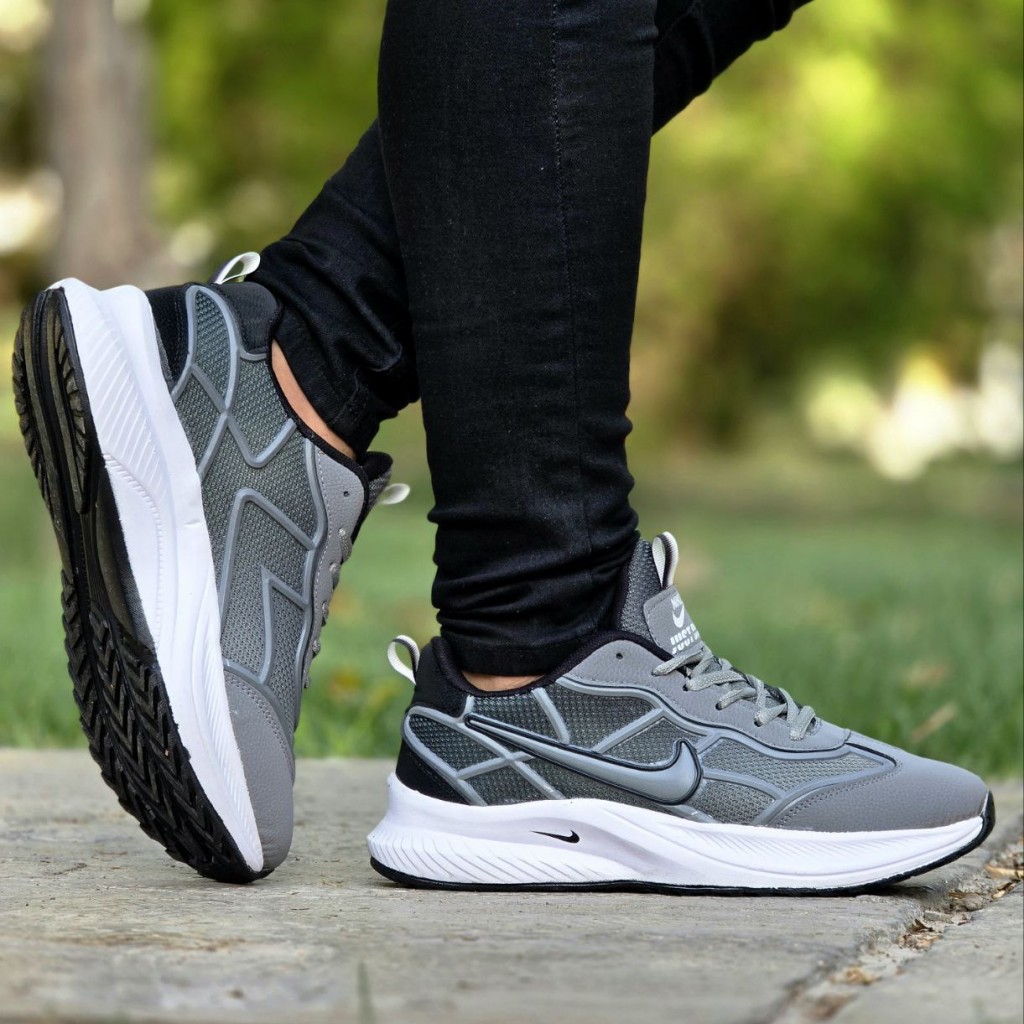 فروش جذاب کفش اسپرت مردانه پسرانه مدل نایک شیک و ویژه رنگ طوسی مشکی با ارسال رایگان