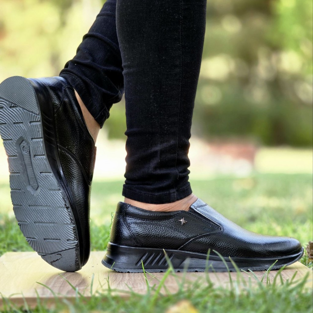 حراج بی تکرار کفش چرم طبیعی تبریز مردانه کلاسیک و راحت رنگ مشکی با ارسال رایگان