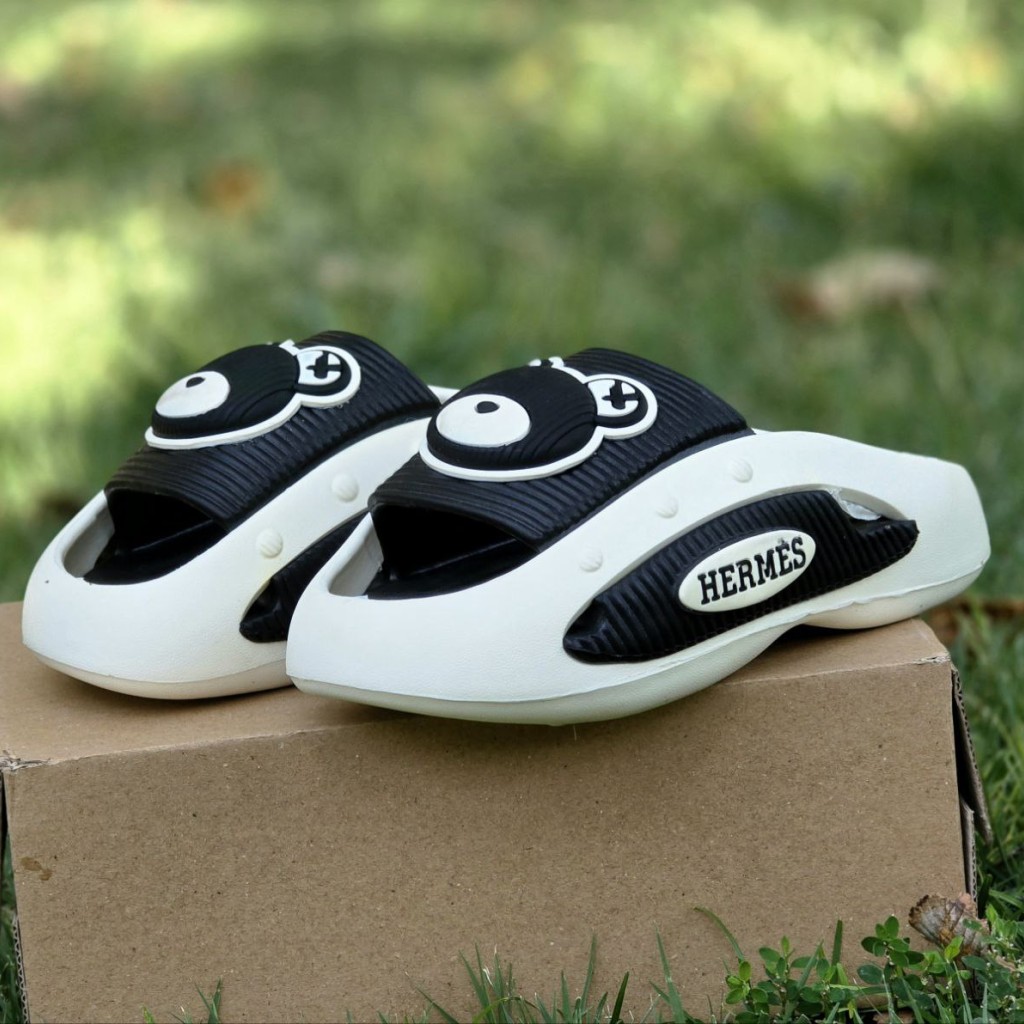 فروش تکرار نشدنی صندل و دمپایی کرومی زنانه و دخترانه مدل جسیکا با طرح خرسی مدرن و جدید رنگ سفید مشکی با ارسال رایگان